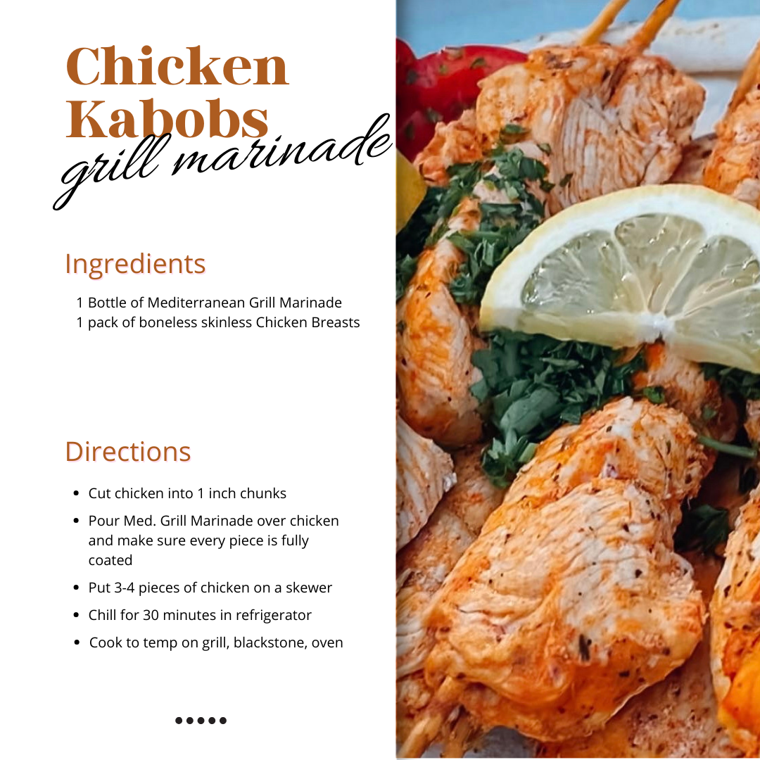 Mouthwatering Chicken Kabobs that are easy and quick. All you need is chicken and our Grill Marinade!